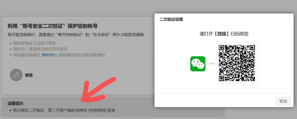 绑定微信成功后,再次访问邮箱,登录成功后会提示微信扫码鉴权。