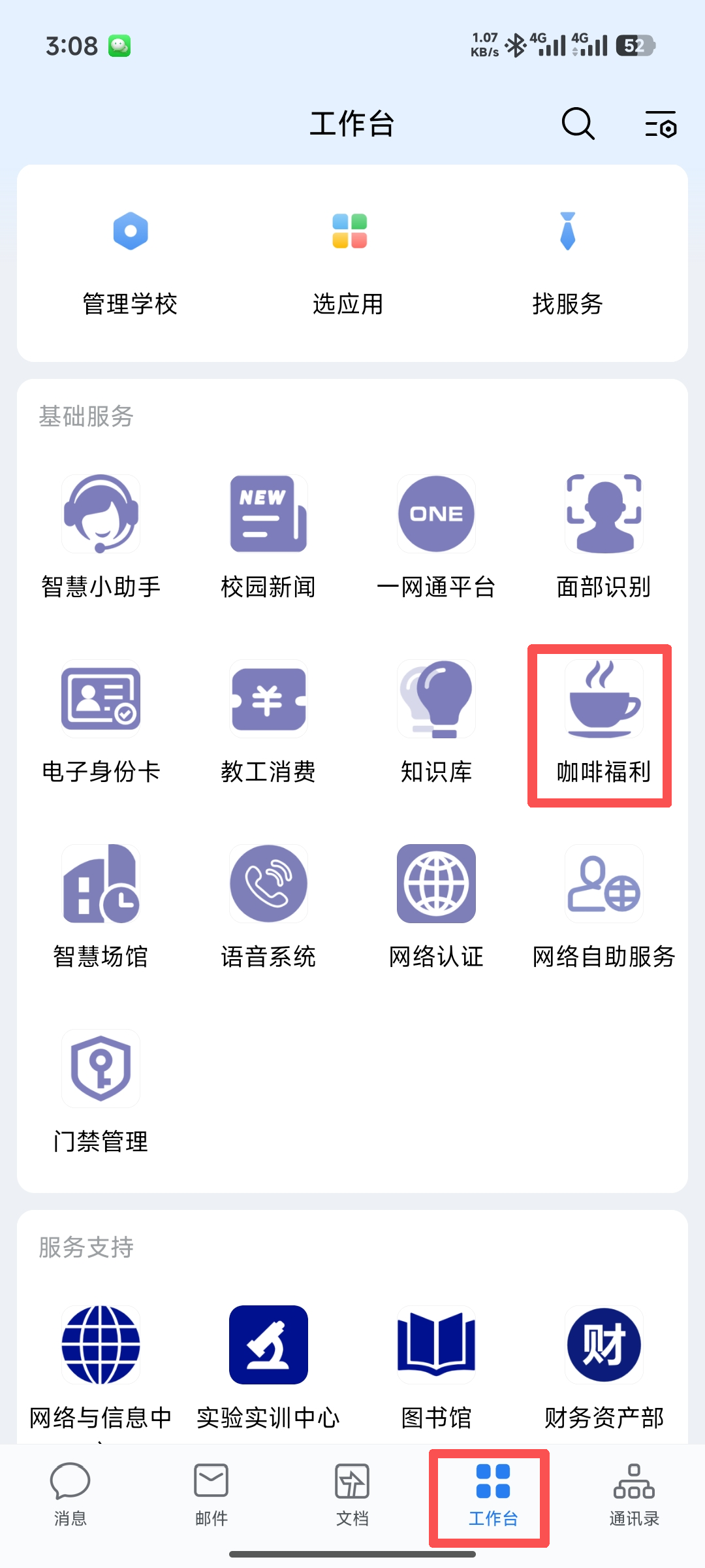 企业微信-->工作台-->咖啡福利,点击后即可查看未使用和已使用的咖啡券。